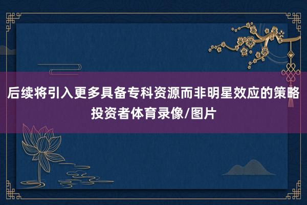 后续将引入更多具备专科资源而非明星效应的策略投资者体育录像/图片