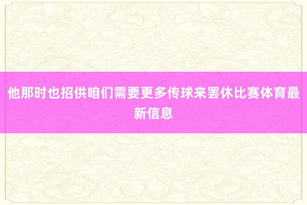 他那时也招供咱们需要更多传球来罢休比赛体育最新信息